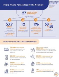 “California is home to dreamers and doers who rise to every challenge with creativity and resolve,” said Governor Newsom. “It’s in that spirit and in the spirit of a California for All that we called on businesses and foundations to step up for communities in need – and they did just that. Through our public-private partnerships, we raised $3.9 billion which has been instrumental in building affordable housing, strengthening our state’s COVID-19 response and more. From aiding struggling undocumented Californians to supporting wraparound services through Homekey, our social innovation work has shown what’s possible when we work together to help each other out.”