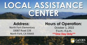 The California Governor’s Office of Emergency Services (Cal OES), in partnership with local, state, and federal agencies, will open a Local Assistance Center (LAC) to aid Fork Fire survivors in Madera County. The LAC will be open from 9 a.m.-4 p.m. on October 1. LACs... Read MoreRead more about Local Assistance Center to Open in Madera County to Support Fork Fire Survivors