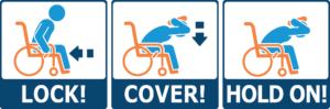 - DROP to the ground, COVER your head with your arms, and HOLD ON to your head and neck until shaking stops