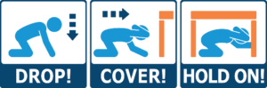 - DROP to the ground, COVER your head with your arms, and HOLD ON to your head and neck until shaking stops