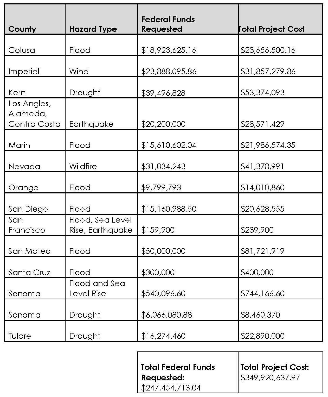 Cal OES submitted the below local projects for federal cost share funding: