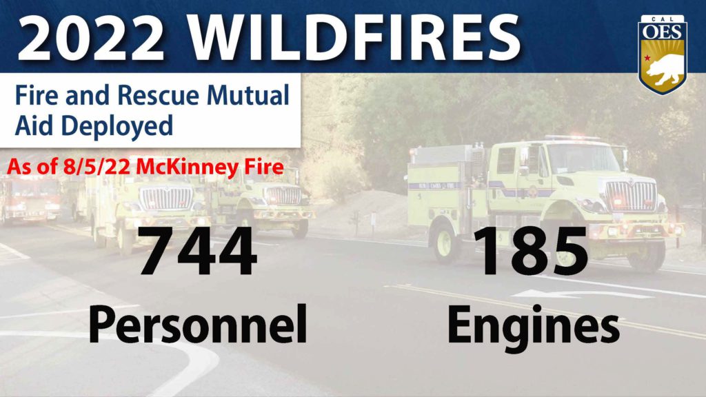 The California Governor’s Office of Emergency Services (Cal OES), in conjunction with state, local and federal partners, is coordinating the deployment of mutual aid resources in support of the McKinney Fire in Siskiyou County.
