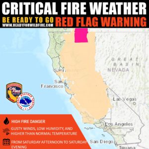 With Red Flag Warnings in effect Sunday, July 18 through Monday, July 19, the California Governor’s Office of Emergency Services (Cal OES) has prepositioned fire apparatus and personnel in various regions across the state to assist local resources in preparation for extreme fire conditions.