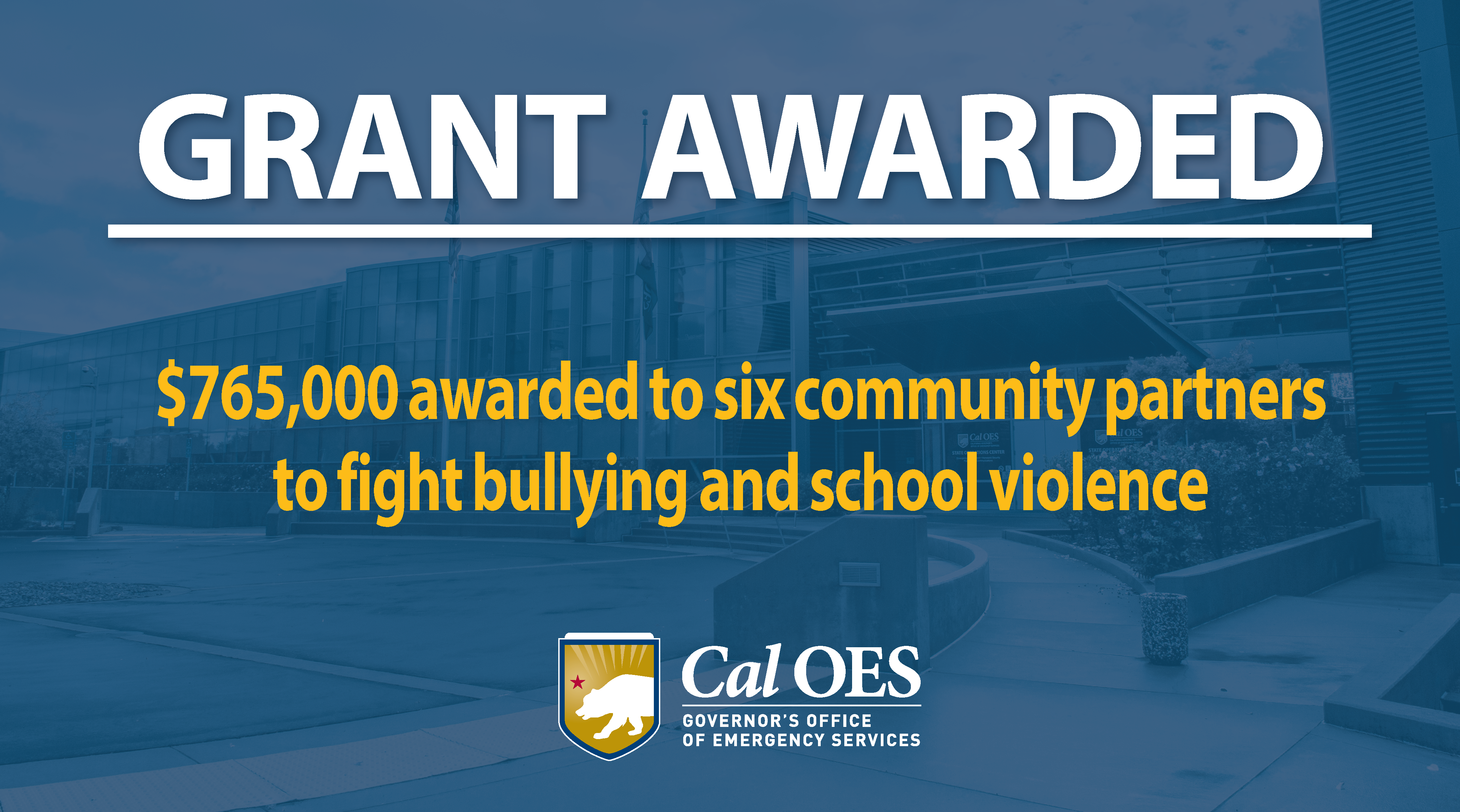Working to support school-aged children with emotional support resources, the Governor’s Office of Emergency Services (Cal OES) today announced $765,000 in funding to help address issues of violence and bullying in schools.