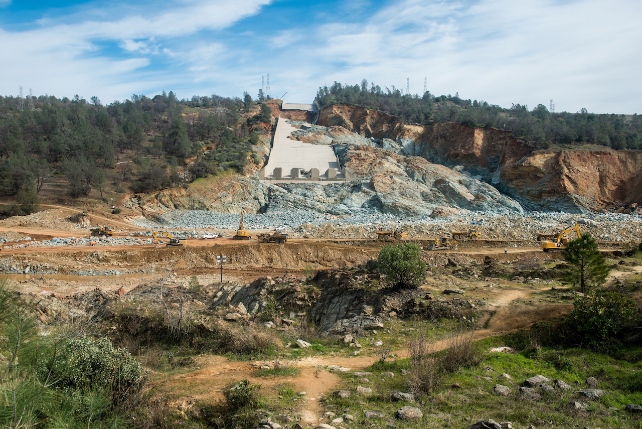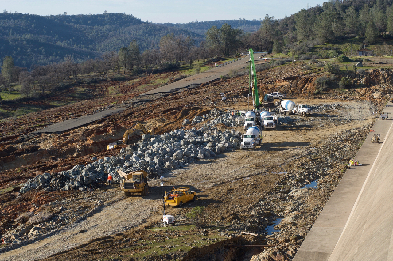 DWR Photo: Work and assessment continues on the damaged Oroville Dam main spillway in Oroville, California, March 3, 2017.