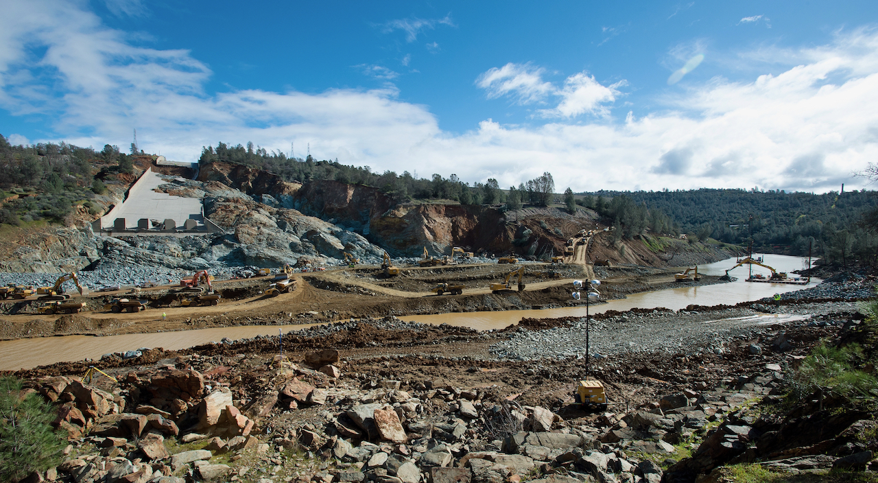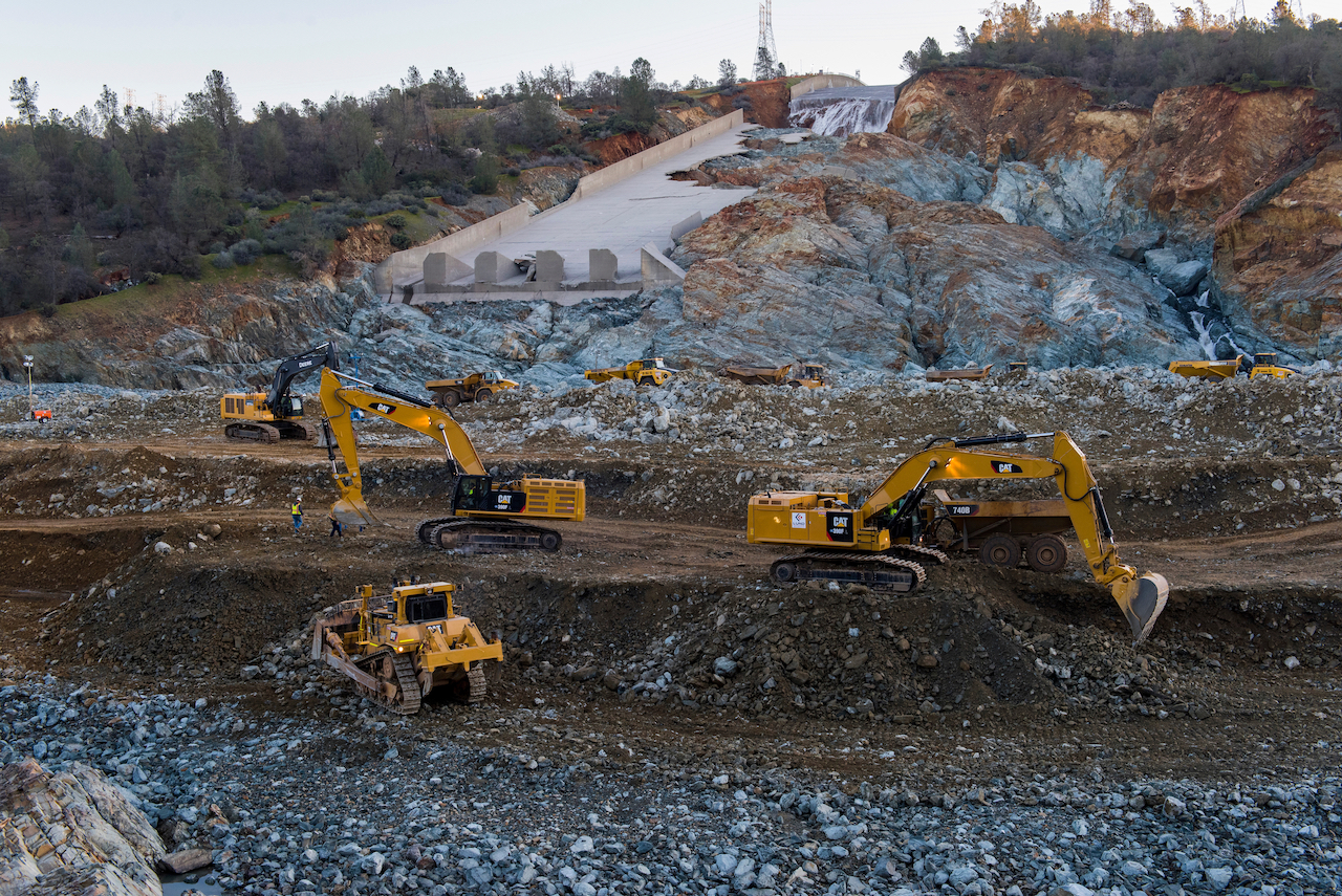 DWR Photo: Heavy equipment work continues Wednesday morning March 1, 2017
