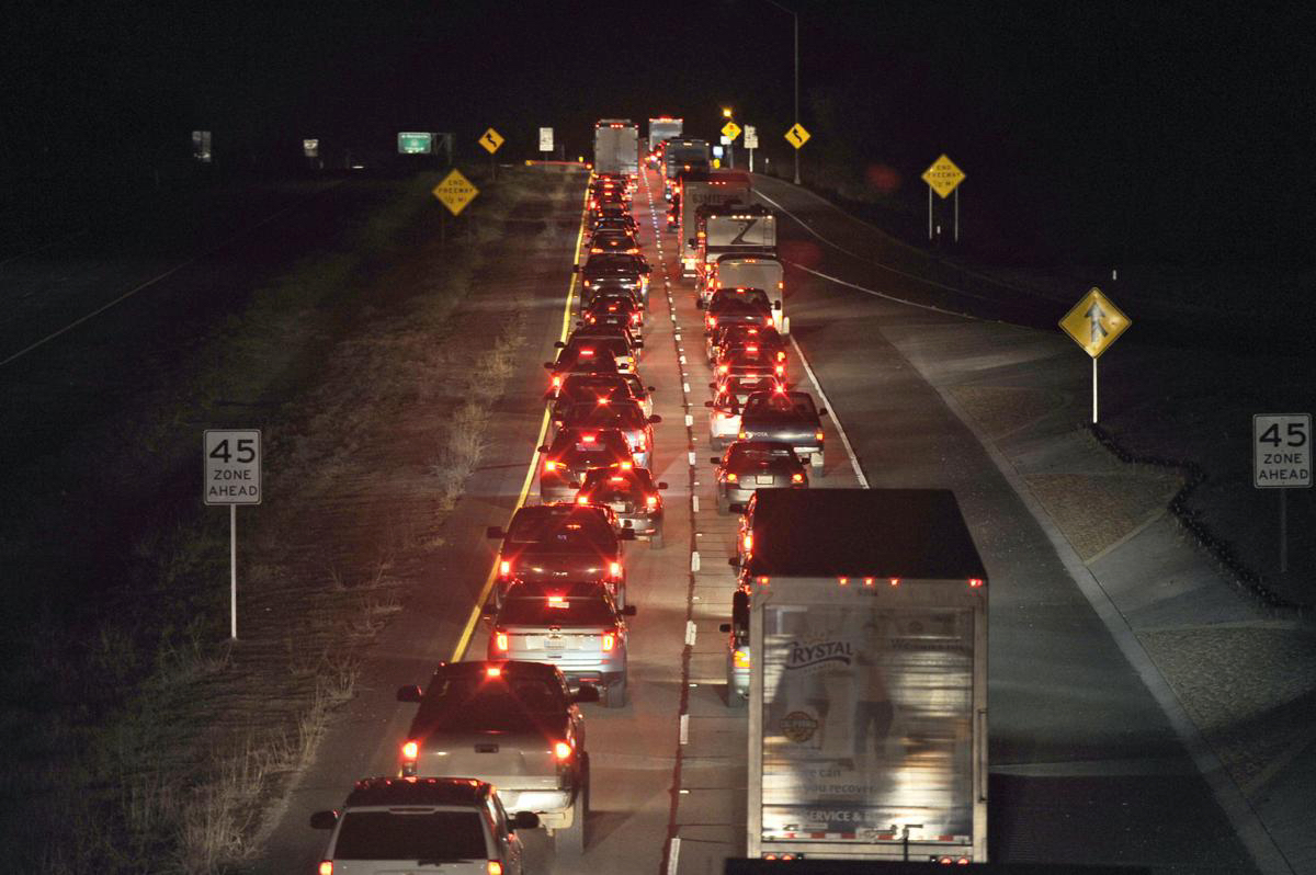Appeal-Democrat Photo: Long line of cars gridlock highway during Oroville evacuation