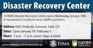 In partnership with Sacramento County and the Federal Emergency Management Agency (FEMA), the California Governor’s Office of Emergency Services (Cal OES) will open a Disaster Recovery Center (DRC) on Wednesday, January 18. The DRC will offer information on available... Read MoreRead more about Disaster Recovery Center to Open in Sacramento County to Assist Californians Impacted by 2023 Winter Storms