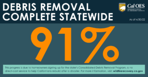 Survivors Participating in State Program Inch Closer to Getting Back on Property SACRAMENTO — Marking another important milestone in helping Californians rebuild and recover after last year’s record-breaking wildfires, the California Governor’s Office of Emergency... Read MoreRead more about Recovery Update: Over 90% of Debris Removed from Properties Affected by 2021 Statewide Wildfires