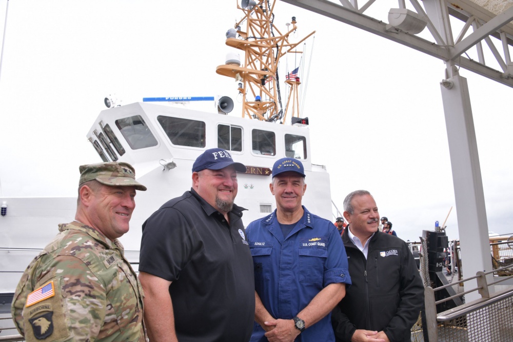 - Top Officials from left to right: Major General David Baldwin, Adjutant General of California National Guard, Mr. Robert Fenton, FEMA Region 9 Administrator, Admiral Karl Schultz, Coast Guard Commandant and Mr. Mark Ghilarducci, California Office of Emergency Services Director.
