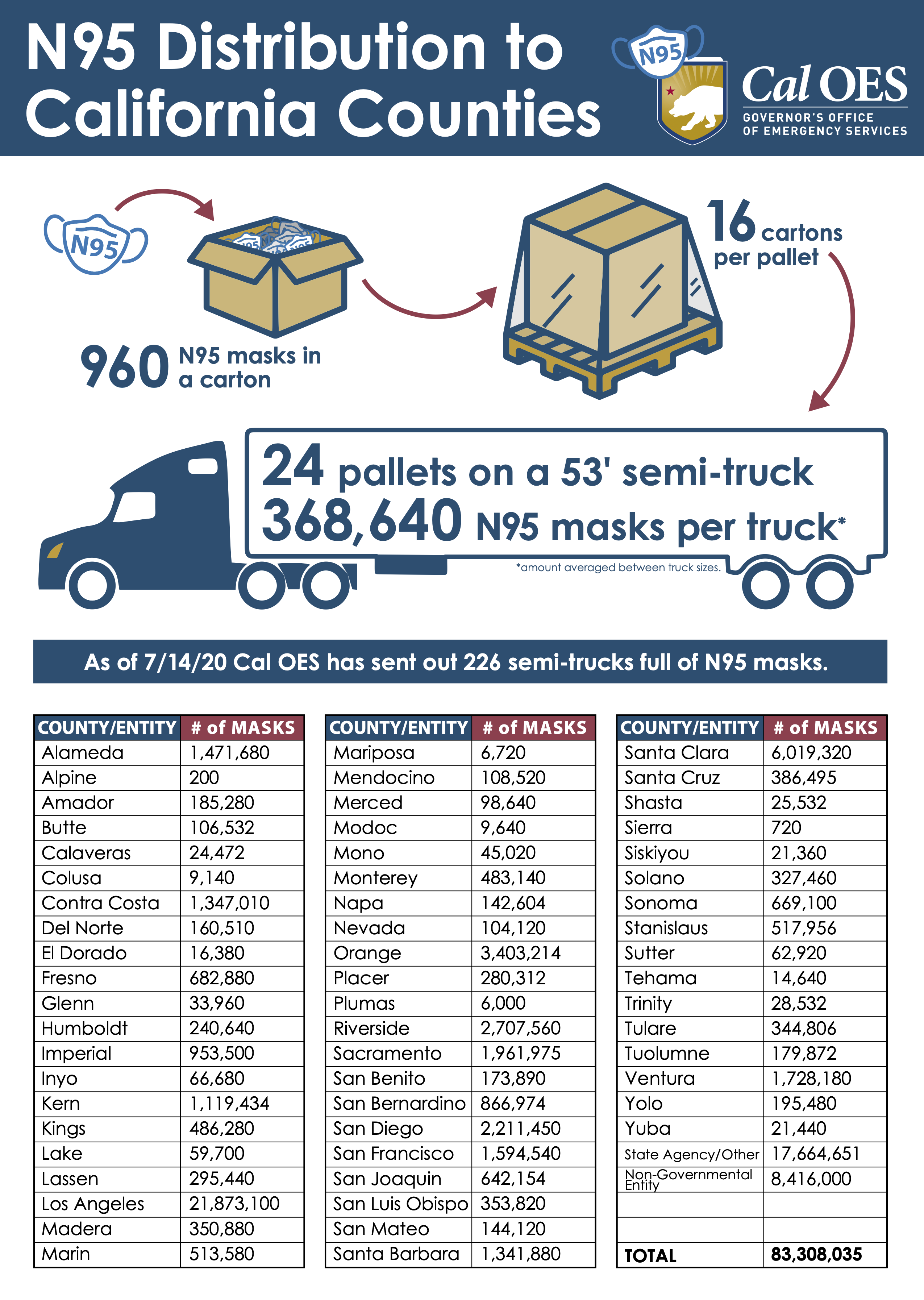 COVID-19 Pandemic N95 Mask Distribution to California Counties