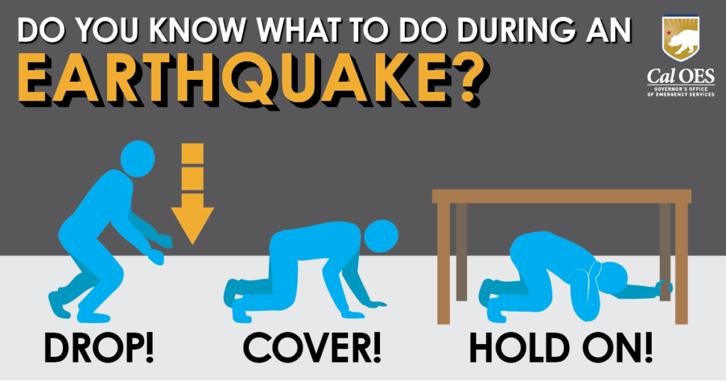 If you’re in bed when the shaking starts, cover your head and neck with pillows. If you’re home, don’t go outside. If you are outside, move away from buildings that may collapse. Stay in an open area away from trees and power lines.