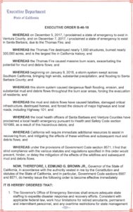 Governor Edmund G. Brown Jr. today issued an executive order to further assist recovery efforts in Southern California related to the Thomas Fire and subsequent mudslides. The order helps ensure there’s the staffing and resources needed to continue to respond to the ongoing disaster and expedite debris removal.