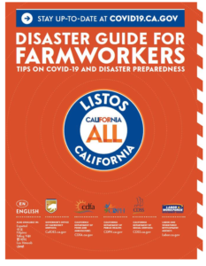 The Disaster Guide for Farmworkers can be found in Englishand Spanish. Special thanks to the state agencies that supported this initiative, including the Governor’s Office of Emergency Services, California Department of Food and Agriculture, California Department of Public Health, California Department of Social Services and the Labor and Workforce Development Agency.