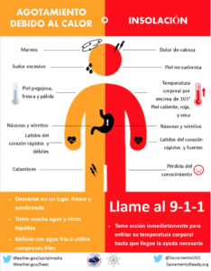 Algunas medidas que puede tomar durante calor extremo es tomar agua y descansar en la sombra o lugar con aire acondicionado. Ademas, aprende a reconocer los síntomas de la insolación y agotamiento debido al calor y que hacer si tienes síntomas o alguien a su alrededor.