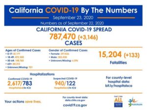 SACRAMENTO – The California Department of Public Health (CDPH) today announced the most recent statistics on COVID-19.