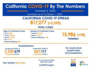 SACRAMENTO – The California Department of Public Health (CDPH) today announced the most recent statistics on COVID-19.