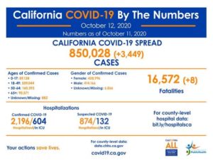 SACRAMENTO – The California Department of Public Health (CDPH) today announced the most recent statistics on COVID-19.