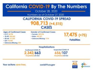 SACRAMENTO – The California Department of Public Health (CDPH) today announced the most recent statistics on COVID-19.