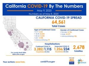 The California Department of Public Health today announced the most recent statistics on COVID-19. California now has 64,561 confirmed cases and 2,678 deaths.
