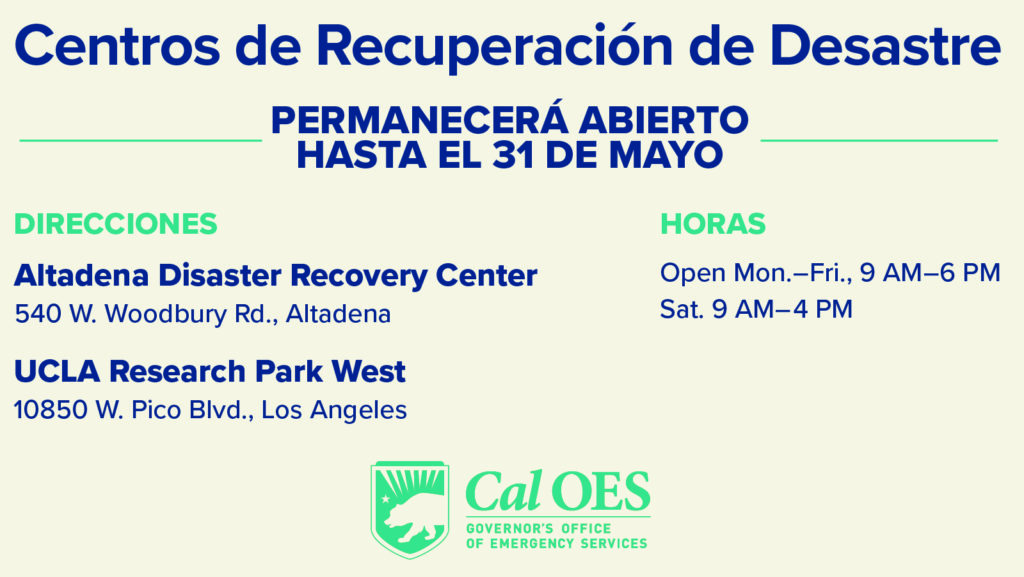 Para más información, visite ca.gov/lafires, Recovery.LACounty.gov, y FEMA.gov/Disaster/4856.