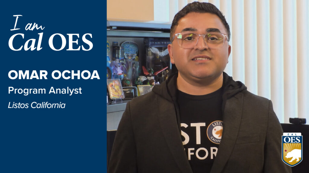 This week, Cal OES welcomes you to learn more about Omar Ochoa, a Program Analyst for Listos California at Cal OES. As a Program Analyst for the Listos California Grant Program, Omar leads the new-grantee onboarding, supports them with questions, sets agendas for monthly meetings and has developed a one-hour hazard-preparedness “train-the-trainer” course to be integrated into new-grantee onboarding and offered to external partners.